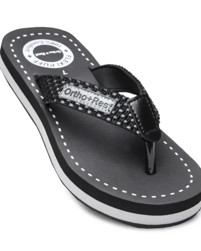 Ortho + Rest slippers and sandals has been engineered from carefully selected and specially blended polymers keeping in mind the requirements of paining heel and foot. It provides that extra yet optimum thrust of cushioning required by an average Indian feet. Ortho + Rest may be effective in many cases. It’s special material provides extra comfort, It is skid and slip resistant and provides symptomatic relief in conditions of aching heel and feet. Being an open footwear it is helpful for diabetics as injuries due to closed,tight fitting and hard soled shoes and prespiration are prevented. As a general footwear its use is strongly recommended to prevent occurance of conditions leading to heel pain and foot pain.