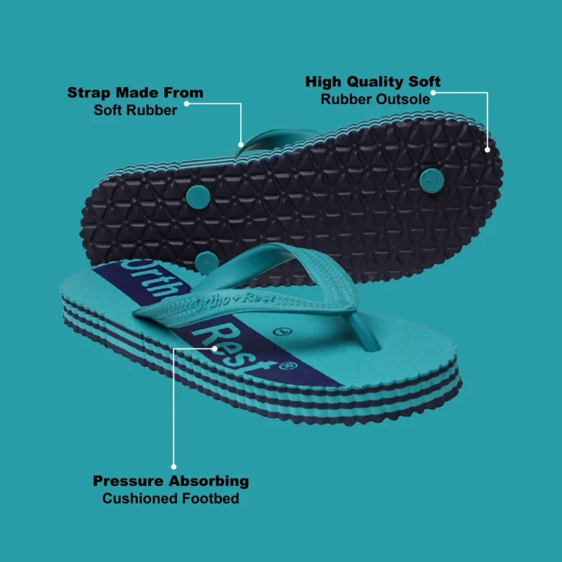 Everyone loves having blue footwear and accessories. Adding comfort and style to your looks, our Blue Ortho + Rest Comfort Slippers are perfect for your wardrobe. These proffer optimal convenience and mobility to the wearer while supporting the foot through its thick strap and base.