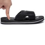 Love the look of traditional leather ‘office slippers’? Then get these Black Ortho + Rest Comfort Slippers with Orange detailing. The slippers have an intricately designed strap. The soft sole and thick strap make it perfect to be worn for a long day at work.