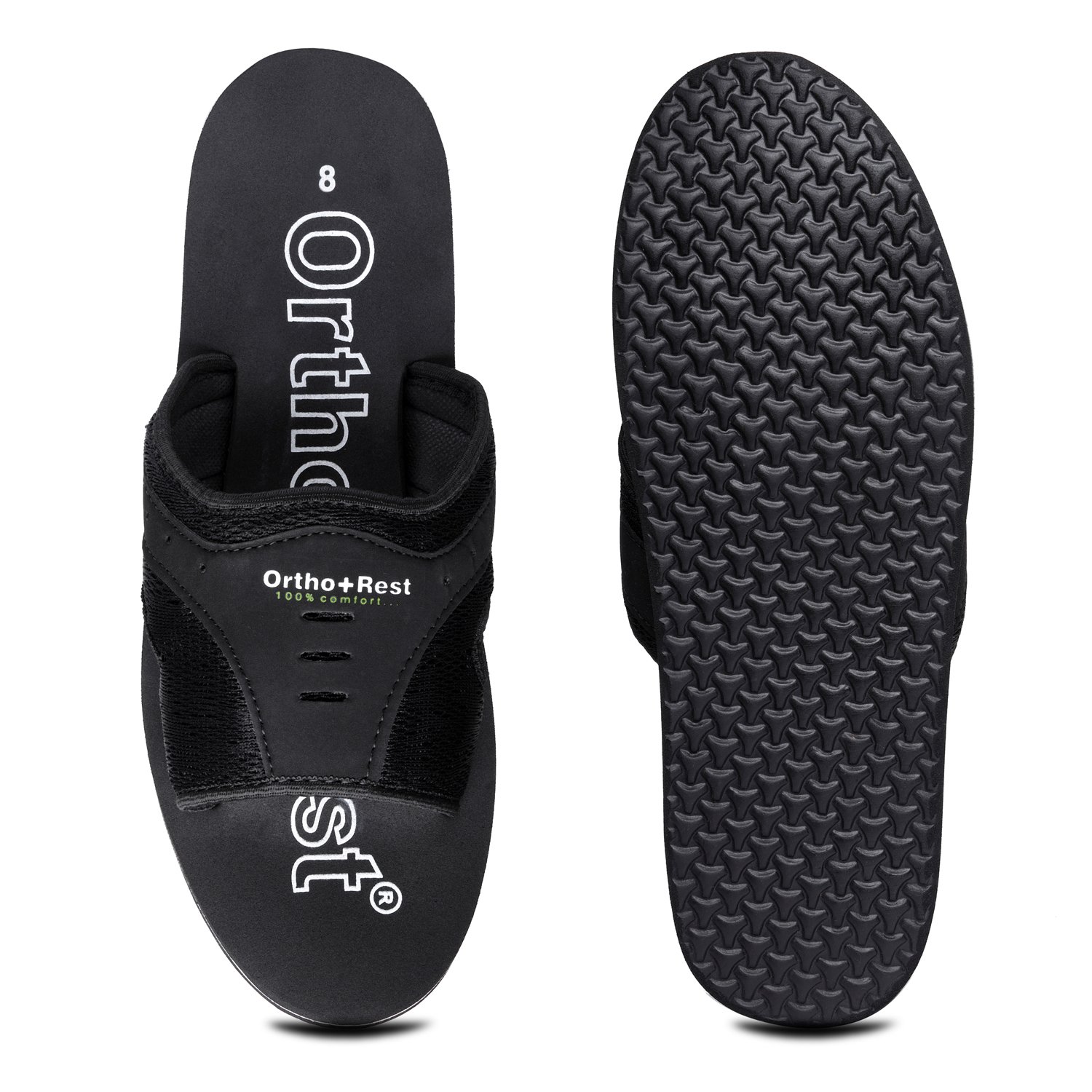 Ortho + Rest may be effective in many cases. It’s special material provides extra comfort, It is skid and slip resistant and provides symptomatic relief in conditions of aching heel and feet. Being an open footwear it is helpful for diabetics as injuries due to closed,tight fitting and hard soled shoes and prespiration are prevented.