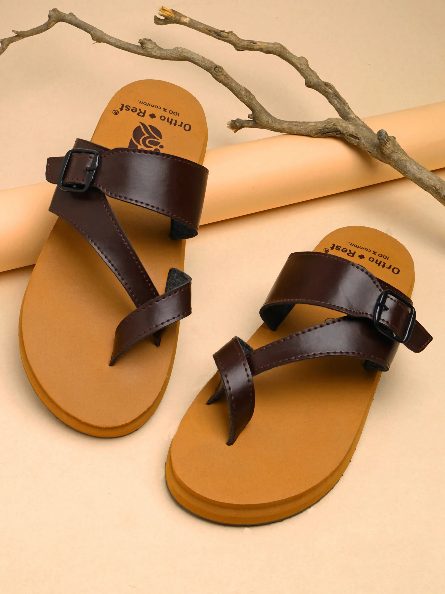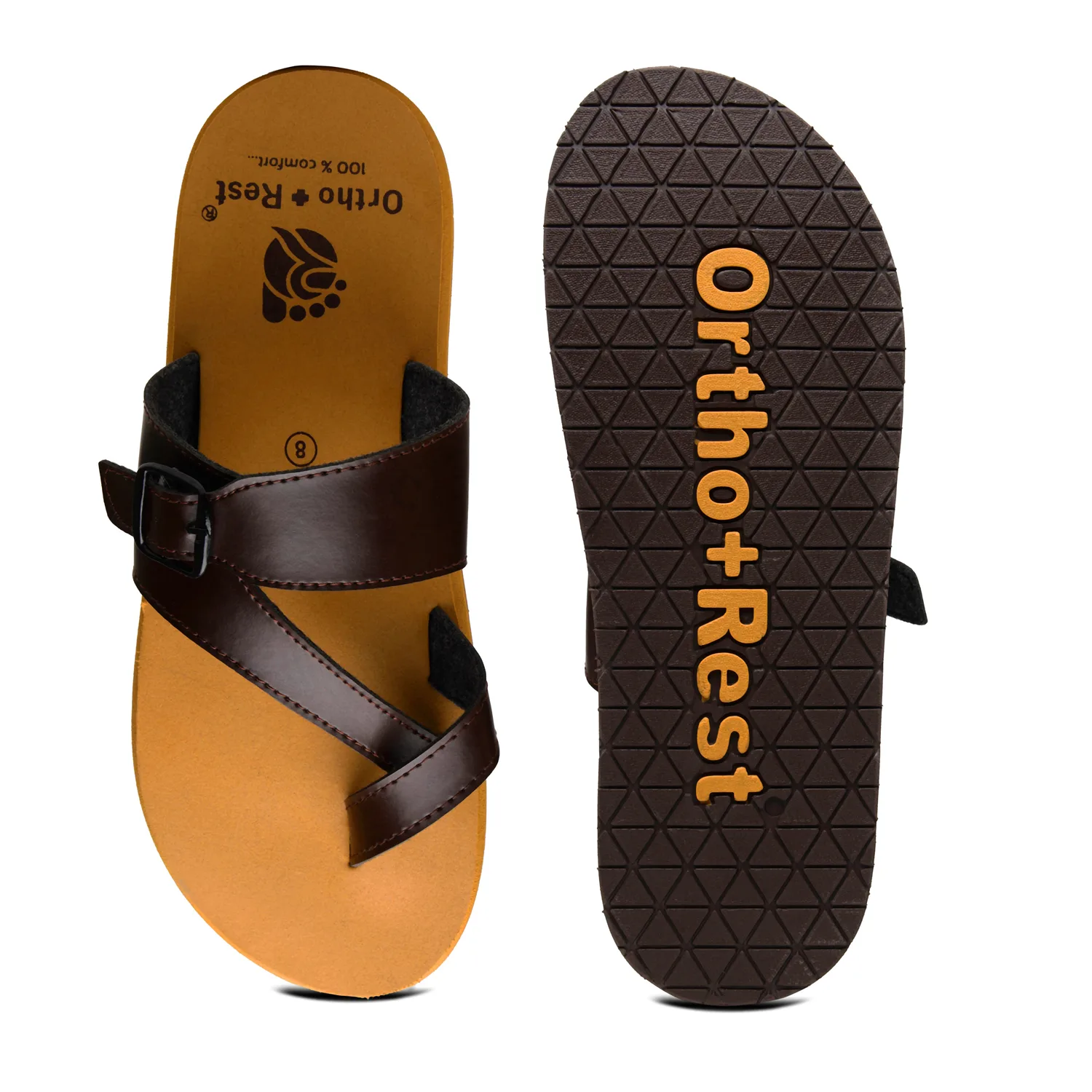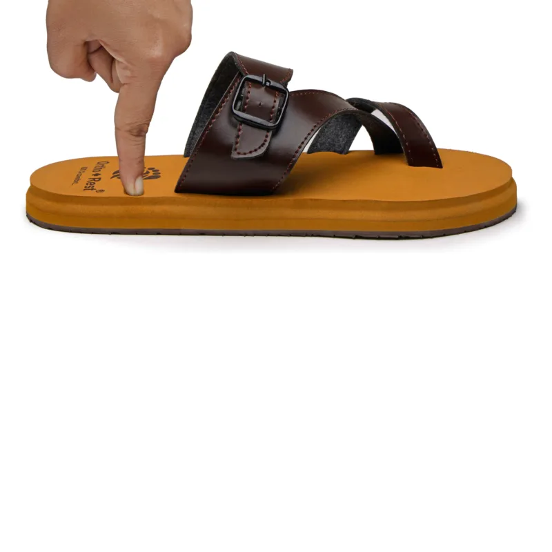 Everyone loves having black footwear and accessories. Adding comfort and style to your looks, our Brown Ortho + Rest Comfort Slippers are perfect for your wardrobe. These proffer optimal convenience and mobility to the wearer while supporting the foot through its thick strap and base.