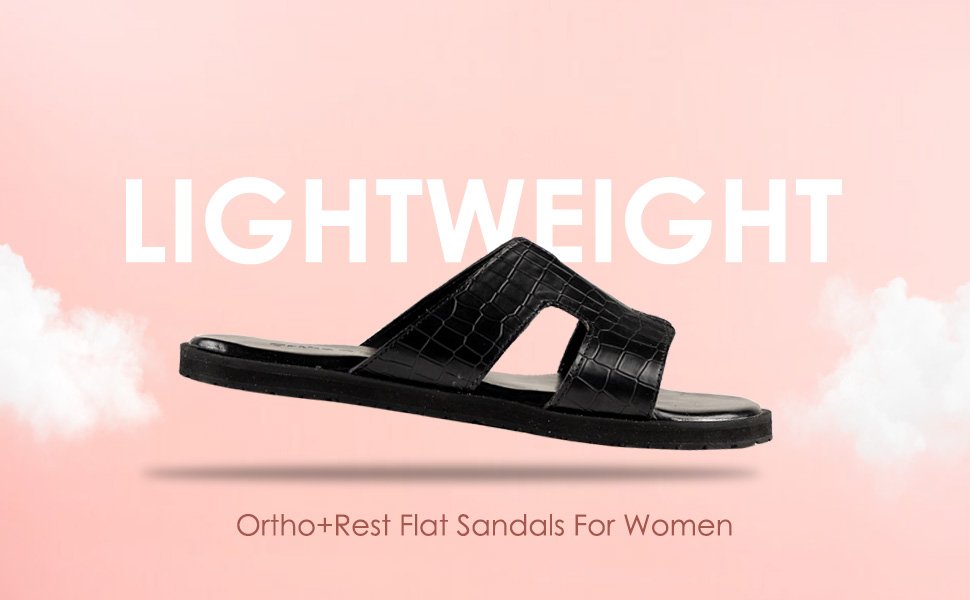 Everyone loves having black footwear and accessories. Adding comfort and style to your looks, our Black Ortho + Rest Comfort Slippers are perfect for your wardrobe. These proffer optimal convenience and mobility to the wearer while supporting the foot through its thick strap and base.