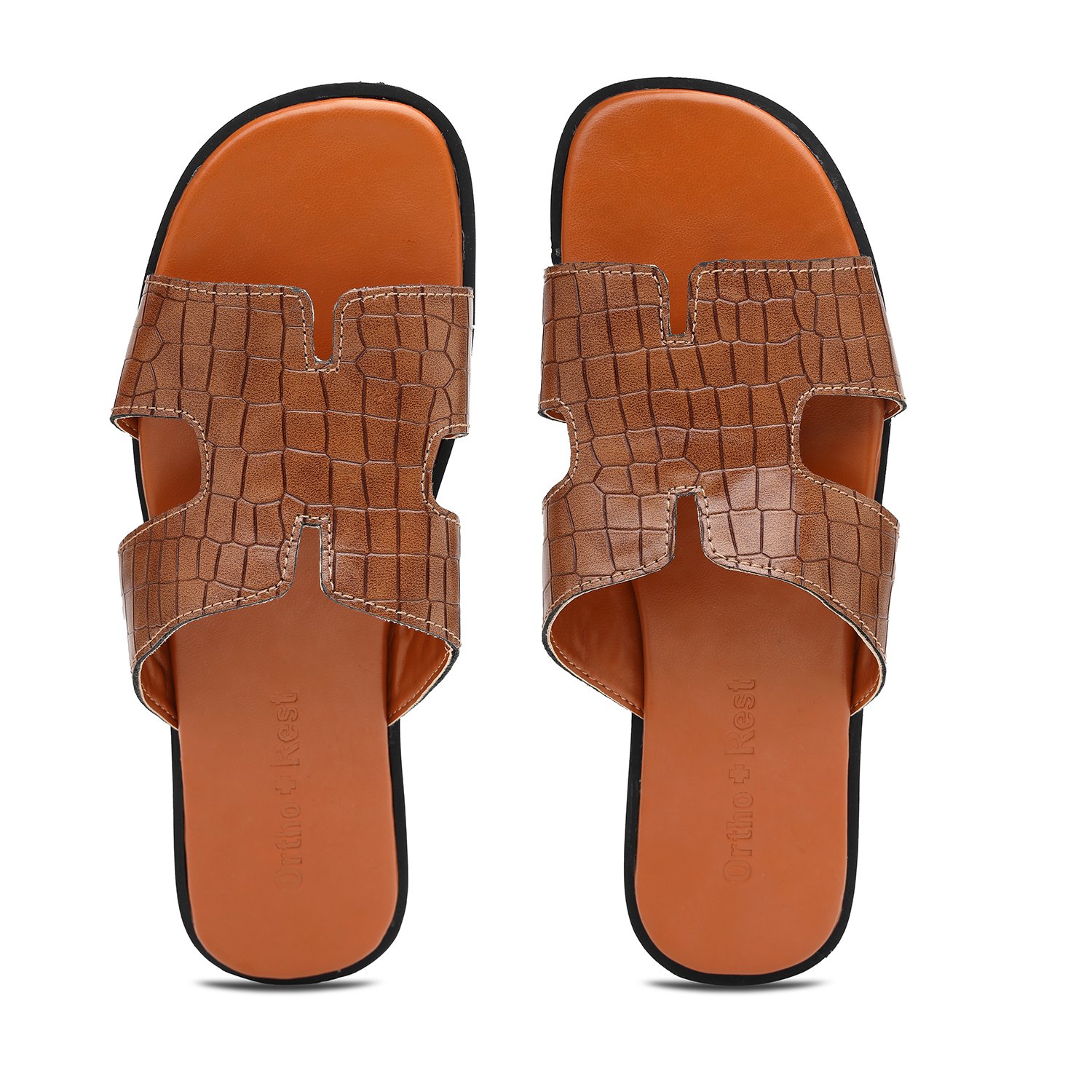 Everyone loves having black footwear and accessories. Adding comfort and style to your looks, our Black Ortho + Rest Comfort Slippers are perfect for your wardrobe. These proffer optimal convenience and mobility to the wearer while supporting the foot through its thick strap and base.