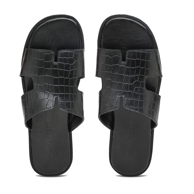 Everyone loves having black footwear and accessories. Adding comfort and style to your looks, our Brown Ortho + Rest Comfort Slippers are perfect for your wardrobe. These proffer optimal convenience and mobility to the wearer while supporting the foot through its thick strap and base.