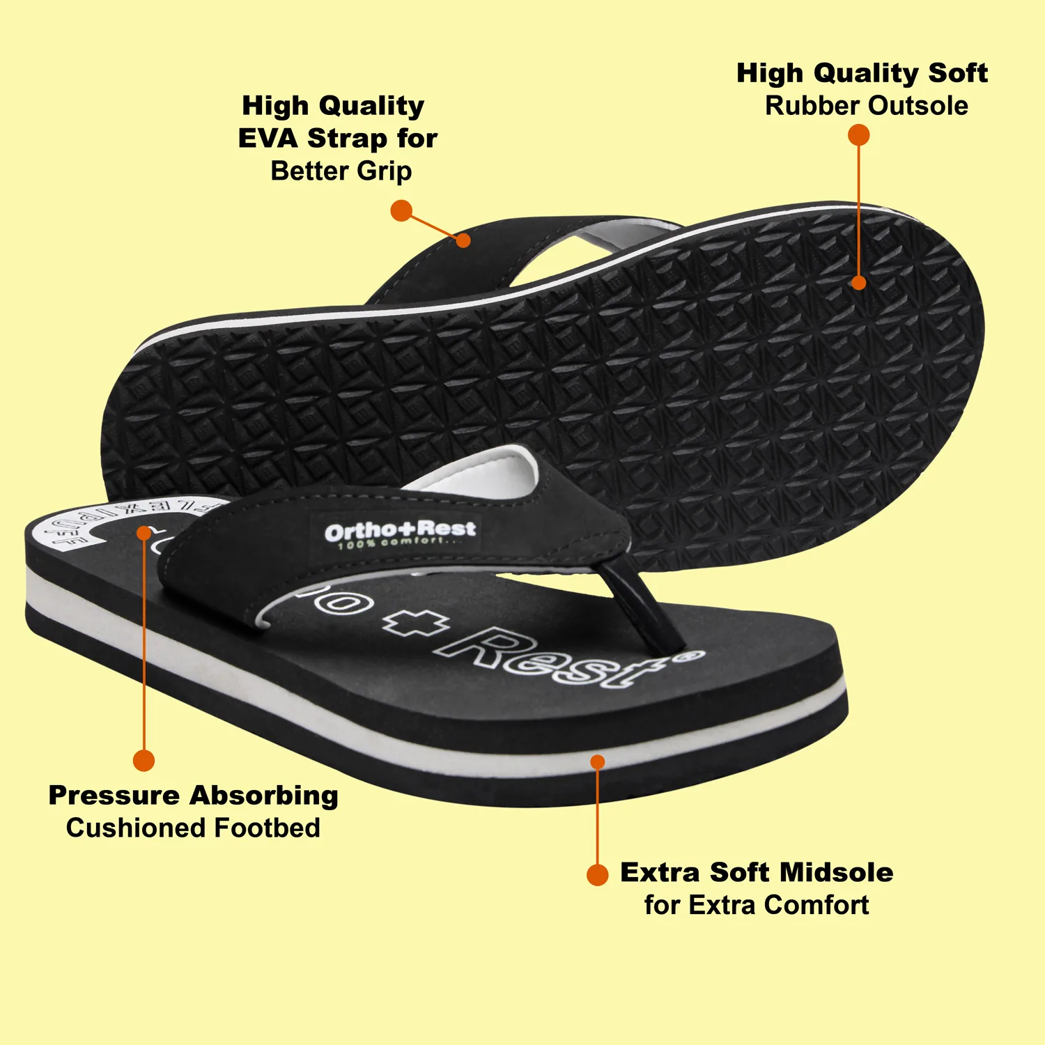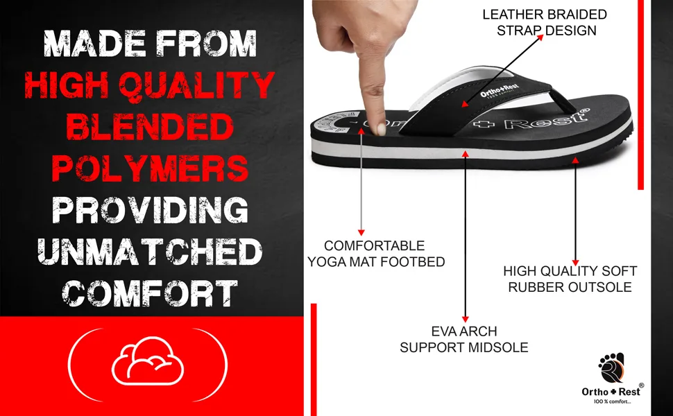 Ortho + Rest slippers and sandals has been engineered from carefully selected and specially blended polymers keeping in mind the requirements of paining heel and foot.