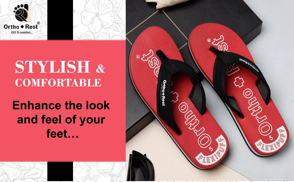 Everyone loves having red footwear and accessories. Adding comfort and style to your looks, our Red Ortho + Rest Comfort Slippers are perfect for your wardrobe. These proffer optimal convenience and mobility to the wearer while supporting the foot through its thick strap and base.