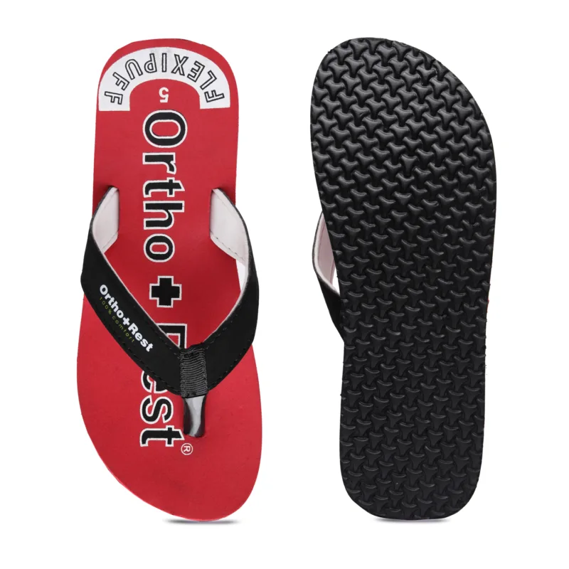 Everyone loves having red footwear and accessories. Adding comfort and style to your looks, our Red Ortho + Rest Comfort Slippers are perfect for your wardrobe. These proffer optimal convenience and mobility to the wearer while supporting the foot through its thick strap and base.