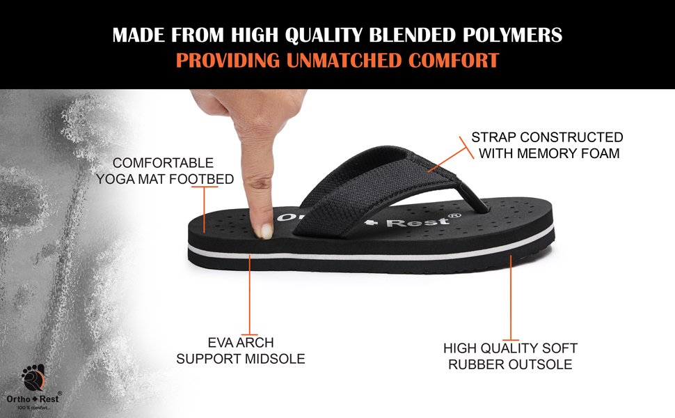 Ortho + Rest slippers and sandals has been engineered from carefully selected and specially blended polymers keeping in mind the requirements of paining heel and foot.