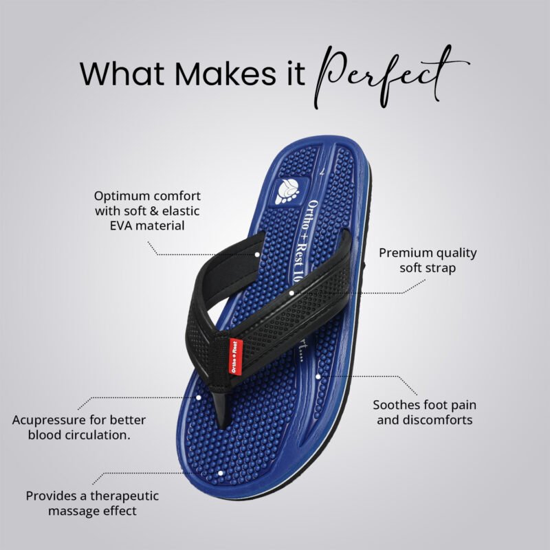 Ortho + Rest slippers and sandals has been engineered from carefully selected and specially blended polymers keeping in mind the requirements of paining heel and foot. It provides that extra yet optimum thrust of cushioning required by an average Indian feet. Ortho + Rest may be effective in many cases. It’s special material provides extra comfort, It is skid and slip resistant and provides symptomatic relief in conditions of aching heel and feet. Being an open footwear it is helpful for diabetics as injuries due to closed,tight fitting and hard soled shoes and prespiration are prevented. As a general footwear its use is strongly recommended to prevent occurance of conditions leading to heel pain and foot pain.