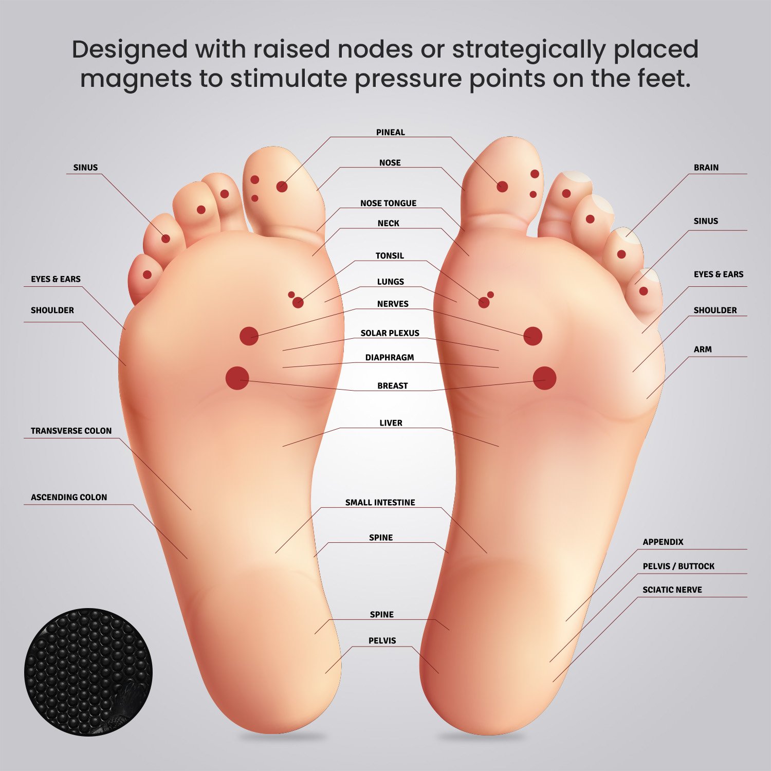 The acupressure footbed offers a soothing massage effect, perfect for pain relief.