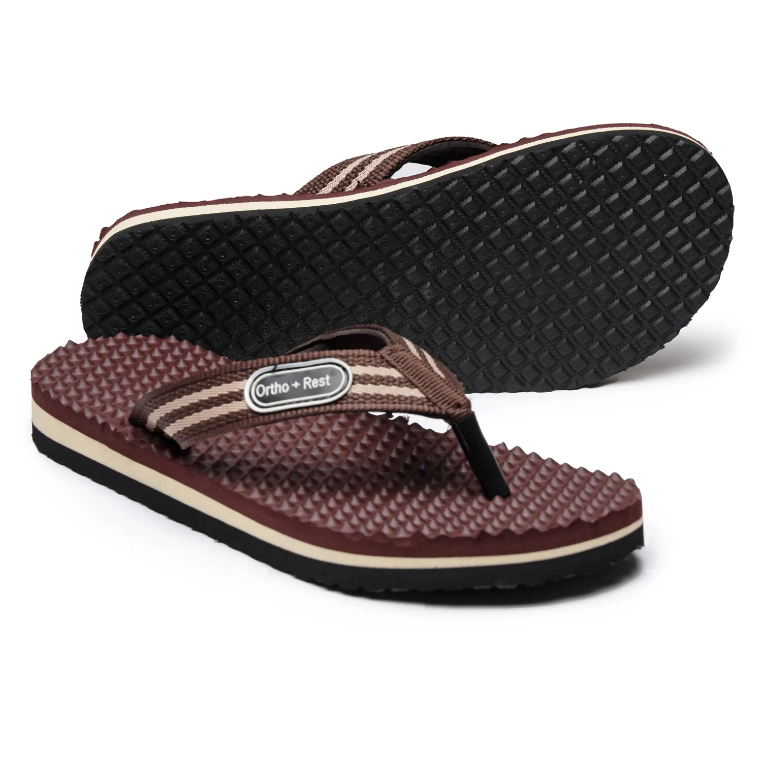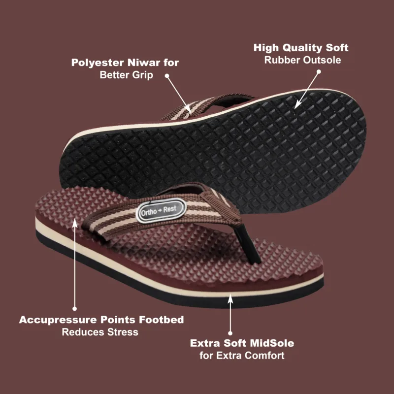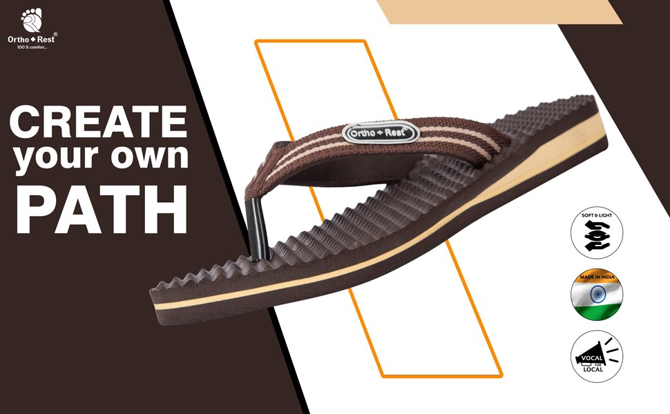 Ortho + Rest slippers and sandals has been engineered from carefully selected and specially blended polymers keeping in mind the requirements of paining heel and foot. It provides that extra yet optimum thrust of cushioning required by an average Indian feet. Ortho + Rest may be effective in many cases. It’s special material provides extra comfort, It is skid and slip resistant and provides symptomatic relief in conditions of aching heel and feet.
