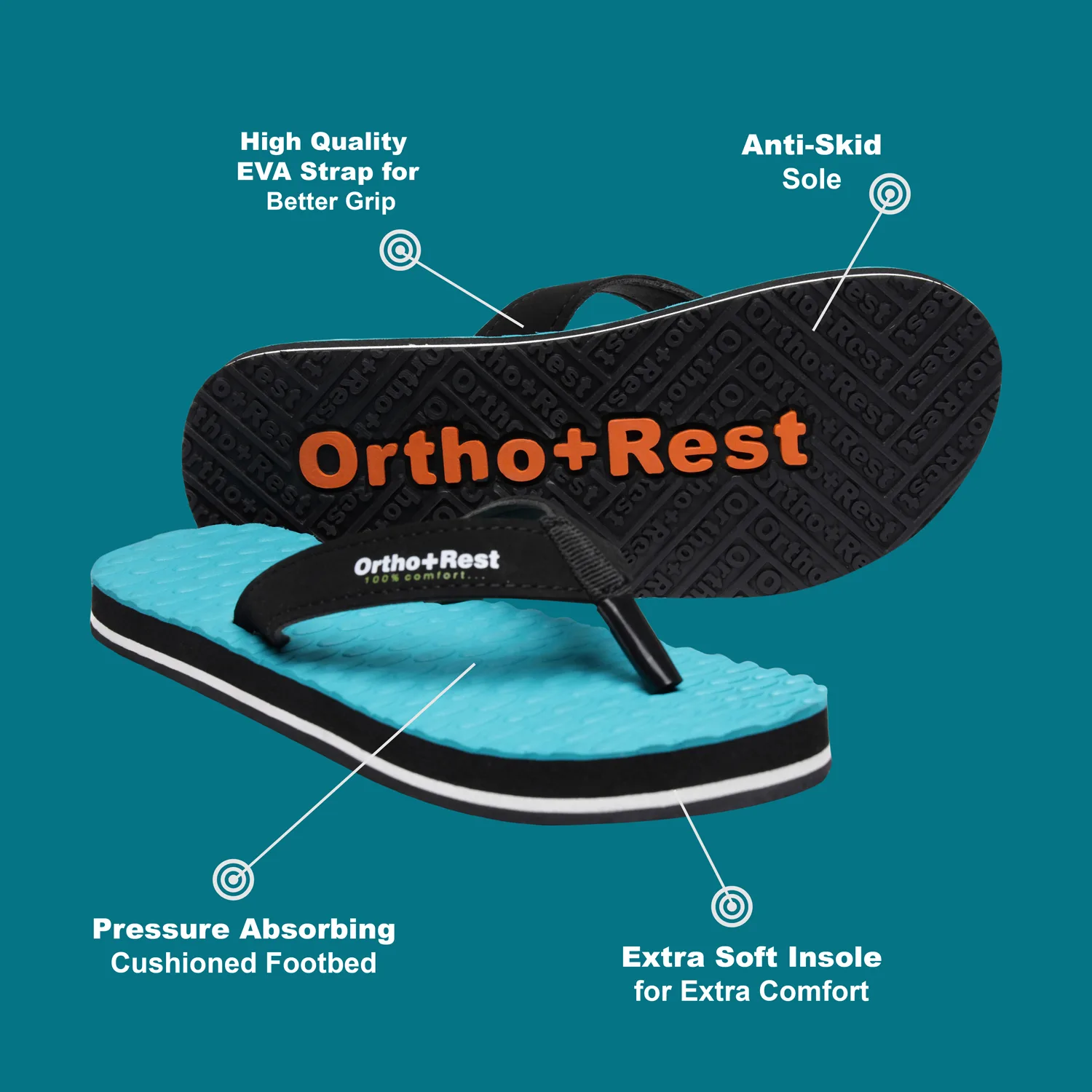 Ortho + Rest Flip Flop has been engineered from carefully selected and specially blended polymers keeping in mind the requirements of paining heel and foot.