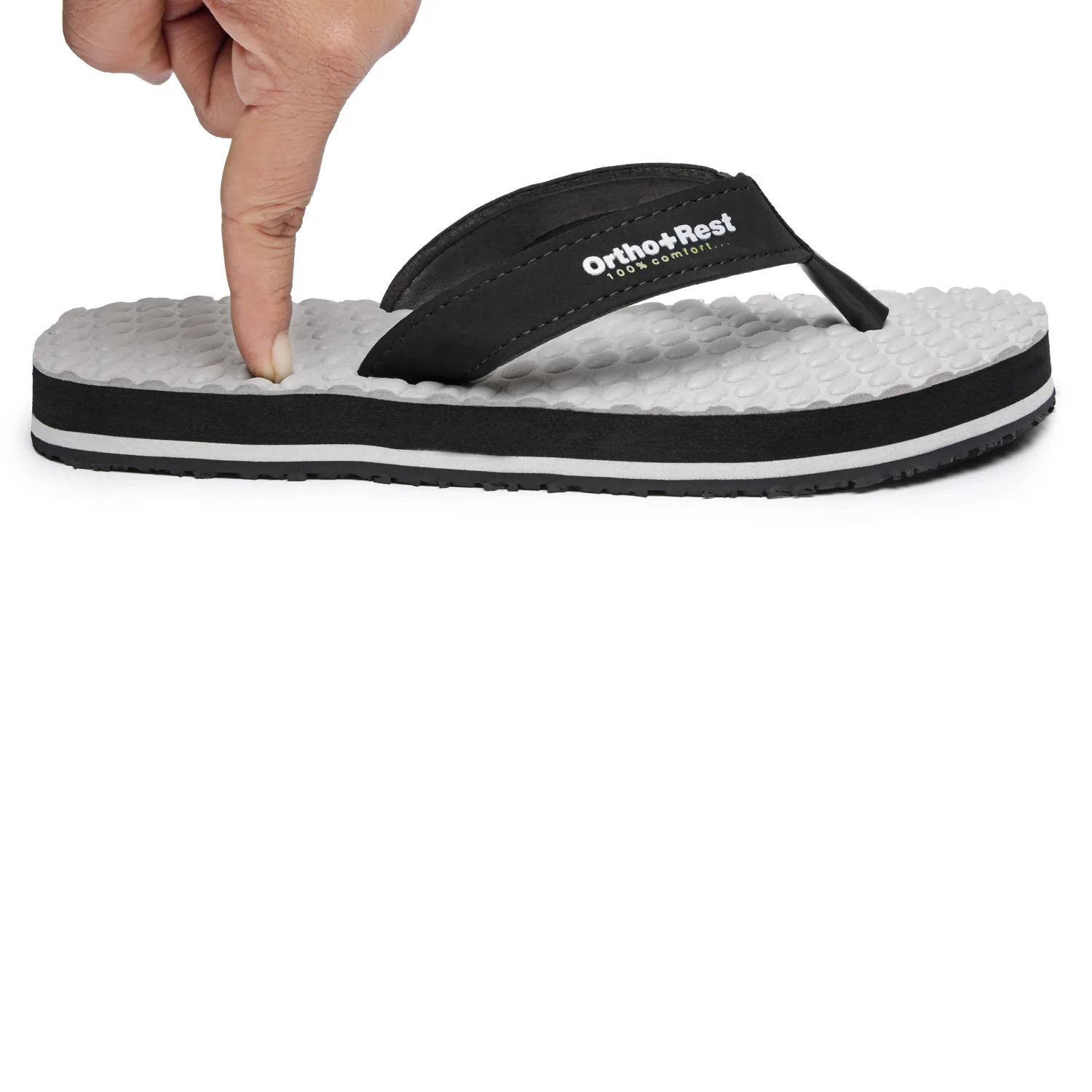 Ortho + Rest slippers and sandals has been engineered from carefully selected and specially blended polymers keeping in mind the requirements of paining heel and foot. It provides that extra yet optimum thrust of cushioning required by an average Indian feet. Ortho + Rest may be effective in many cases. It’s special material provides extra comfort, It is skid and slip resistant and provides symptomatic relief in conditions of aching heel and feet. Being an open footwear it is helpful for diabetics as injuries due to closed,tight fitting and hard soled shoes and prespiration are prevented. As a general footwear its use is strongly recommended to prevent occurance of conditions leading to heel pain and foot pain.