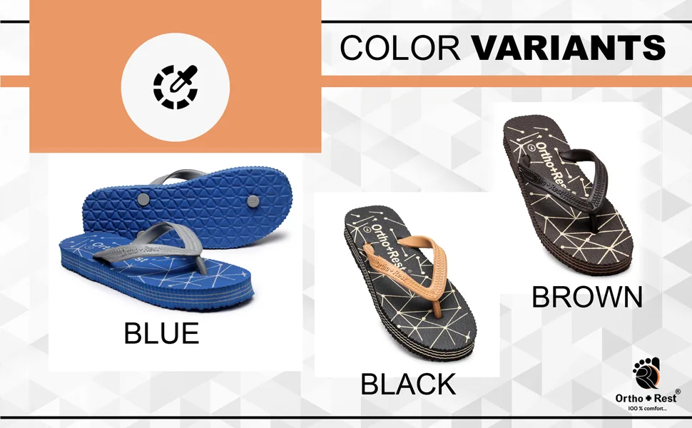 Everyone loves having blue footwear and accessories. Adding comfort and style to your looks, our Blue Ortho + Rest Comfort Slippers are perfect for your wardrobe. These proffer optimal convenience and mobility to the wearer while supporting the foot through its thick strap and base.