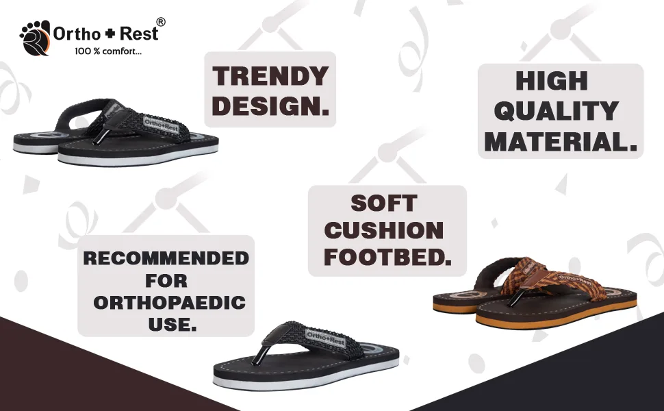 Ortho + Rest slippers and sandals has been engineered from carefully selected and specially blended polymers keeping in mind the requirements of paining heel and foot. It provides that extra yet optimum thrust of cushioning required by an average Indian feet. Ortho + Rest may be effective in many cases. It’s special material provides extra comfort, It is skid and slip resistant and provides symptomatic relief in conditions of aching heel and feet. Being an open footwear it is helpful for diabetics as injuries due to closed,tight fitting and hard soled shoes and prespiration are prevented. As a general footwear its use is strongly recommended to prevent occurance of conditions leading to heel pain and foot pain.