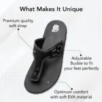 Love the look of traditional leather ‘office slippers’? Then get these Black Ortho + Rest Comfort Slippers with Orange detailing. The slippers have an intricately designed strap. The soft sole and thick strap make it perfect to be worn for a long day at work.