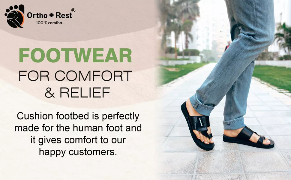 Ortho + Rest slippers and sandals has been engineered from carefully selected and specially blended polymers keeping in mind the requirements of paining heel and foot. It provides that extra yet optimum thrust of cushioning required by an average Indian feet. Ortho + Rest may be effective in many cases. It’s special material provides extra comfort, It is skid and slip resistant and provides symptomatic relief in conditions of aching heel and feet.