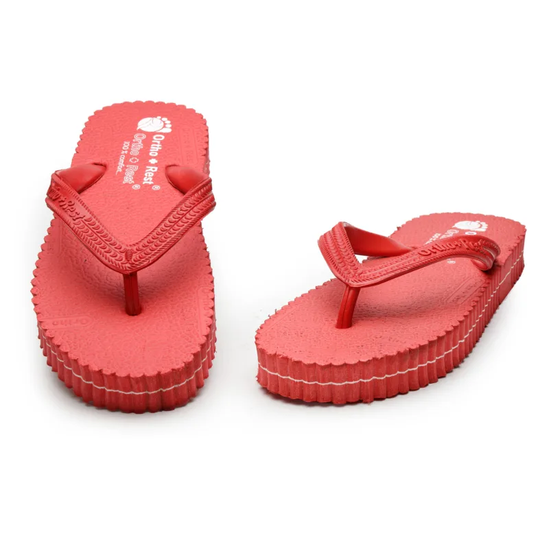 Everyone loves having red footwear and accessories. Adding comfort and style to your looks, our Red Ortho + Rest Comfort Slippers are perfect for your wardrobe. These proffer optimal convenience and mobility to the wearer while supporting the foot through its thick strap and base.